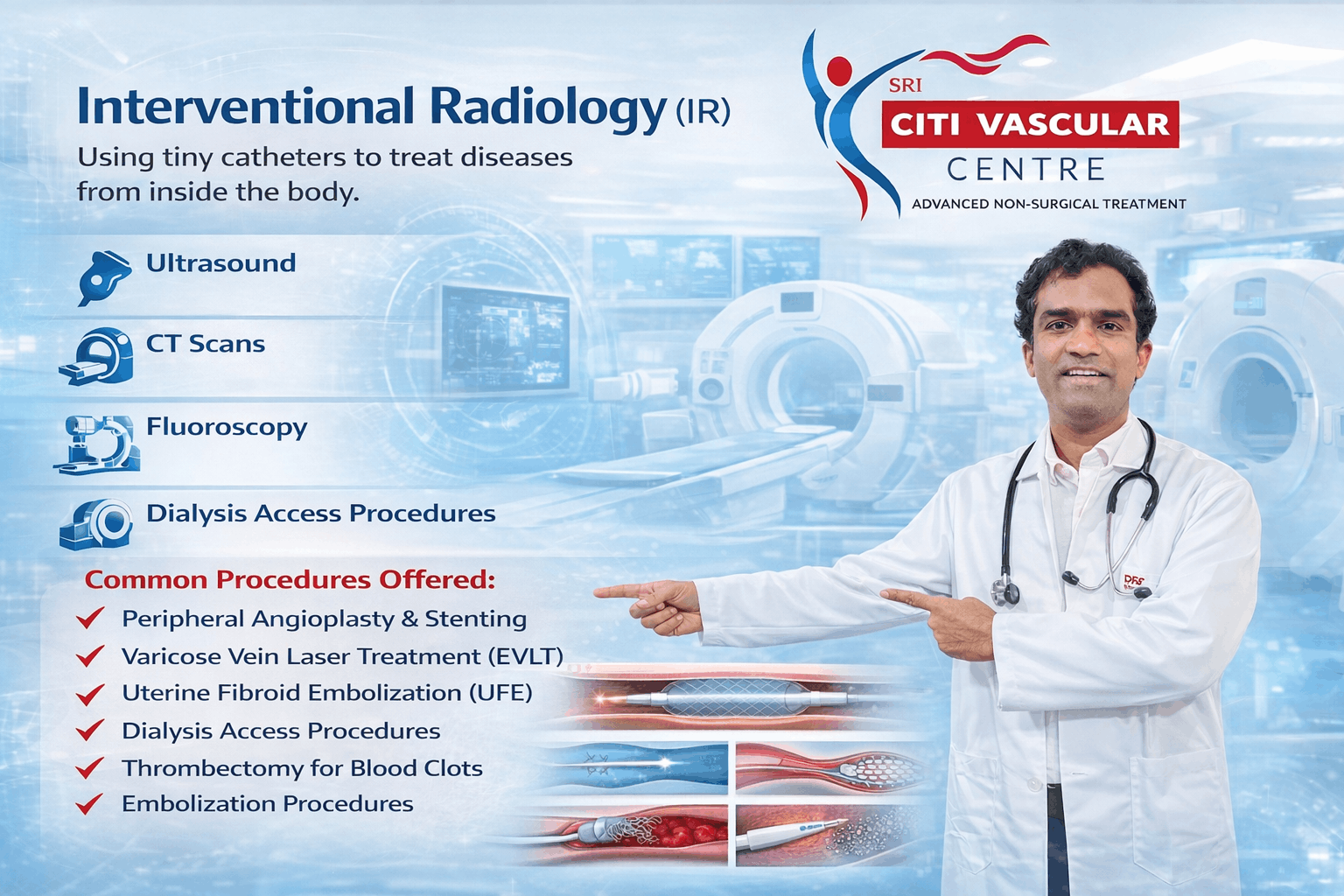 Citi Vascular Hospital is the advanced centre for day care surgeries and non surgical laser treatments in hyderabad. Dr. Shailesh kumar Garge is a Director and Chief Vascular Physician and Interventional Radiologist at Citi Vascular Hospital. Citi Vascular Hospital is known for its day care surgeries and non surgical laser treatments like Varicose Veins Treatment, Varicocele Treatment, Uterine Fibroid Treatment, Piles Treatment, Breast Fibroadenoma Treatment, Prostate Enlargement Treatment, Thyroid lump ablation, Osteoid Osteoma Ablation, Liver, renal and lung tumour ablation, Peripheral arterial disease treatment, DVT treatment, Pain Management, FNAC, Biopsy Tests, vascular dialysis access, perm cath placement. General surgeries likes circumcision, vasectomy, hydrocele, lipoma, sebaceous cyst surgeries, etc